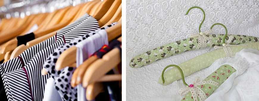 Если на перекладине мало места, то от поролоновых вешалок лучше отказаться. Тогда получится сэкономить недостающие сантиметры, и разместить больше вещей.