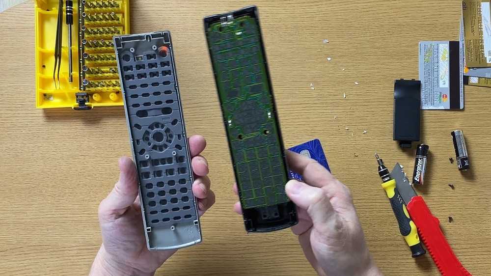 Быстрая чистка корпуса – это защита от образования сложно выводимых пятен. Но для качественного удаления загрязнений требуется регулярно разбирать пульт, очищать электронную плату, кнопки и отсек для батареек. Процедуру следует выполнять аккуратно и не спеша, чтобы не повредить контакты.