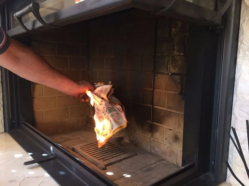 - Использование мусора, старой бумаги, лакированного дерева приводит не только к появлению специфического запаха, но и сажи, копоти или еще хуже — несмываемых пятен. При розжиге эффективным современным способом является применение газовой горелки.