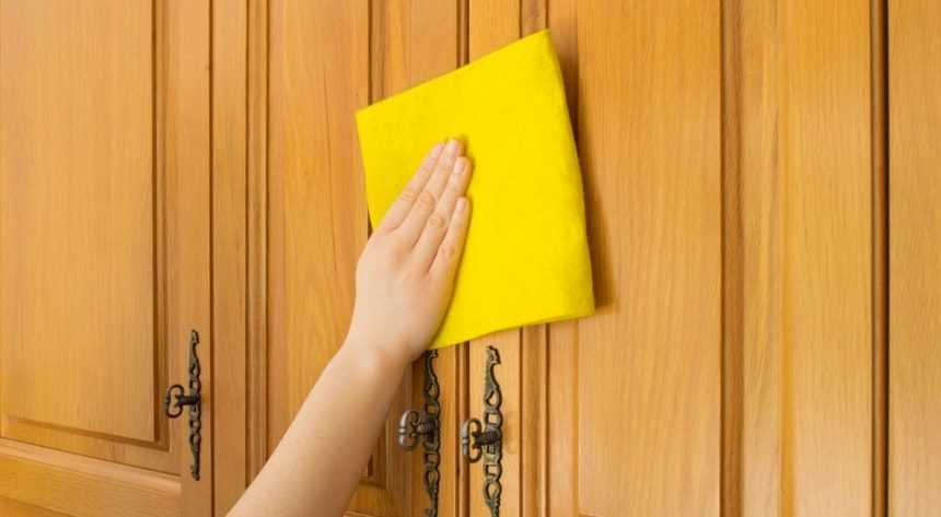 Деревянные фасады отличаются сложностью в очистке. Чтобы вымыть жир и прочие загрязнения, используйте мягкие салфетки без ворса и специальные составы для дерева. По окончании уборки насухо протрите все поверхности и обработайте их воском или полиролью. Это защитит дерево от пыли и прочих загрязнений.