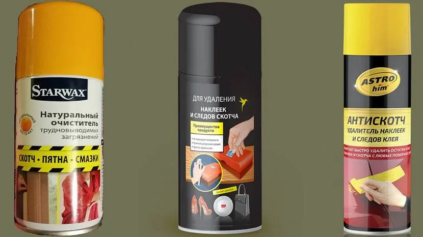 Если отмыть скотч своими руками подручными средствами не удалось, всегда можно воспользоваться специально созданными для этого жидкостями и аэрозолями.