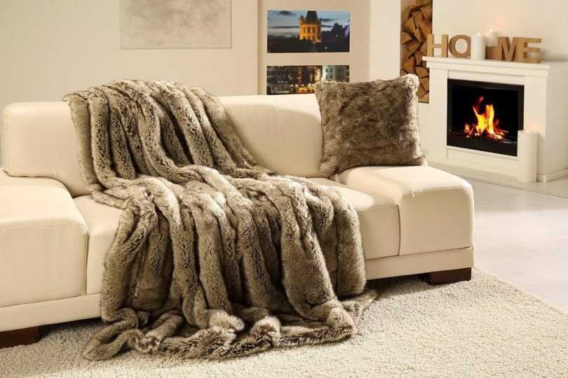 - Накидка на диван из искусственного меха поможет создать уют, сделать помещение стильным.