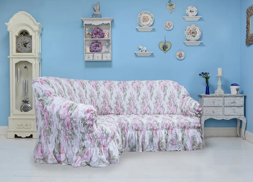 Дивандеки. Комплекты из нескольких чехлов, специально рассчитанные на угловые модели диванов. Многие изготовители мебели выпускают и чехлы для своих моделей. Если габариты нестандартные, выходом станет индивидуальный пошив. Дизайн может быть самым разным; встречаются гофрированные, стеганые, в стиле пэчворк (лоскутные), с оборками.