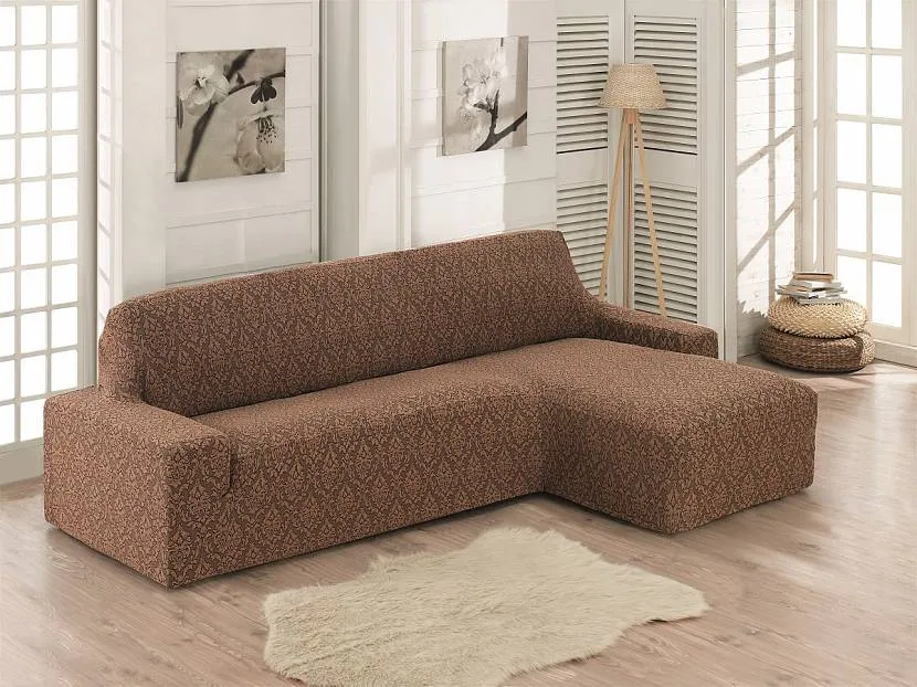 Натяжная накидка (чехол, фиксирующийся резинкой) – рациональное решение для угловых диванов. В ассортименте всегда есть модели из непромокаемых материалов – это практично на кухне, при кормлении маленьких детей, когда мебель используется интенсивно (покрывало не сбивается, не морщится).