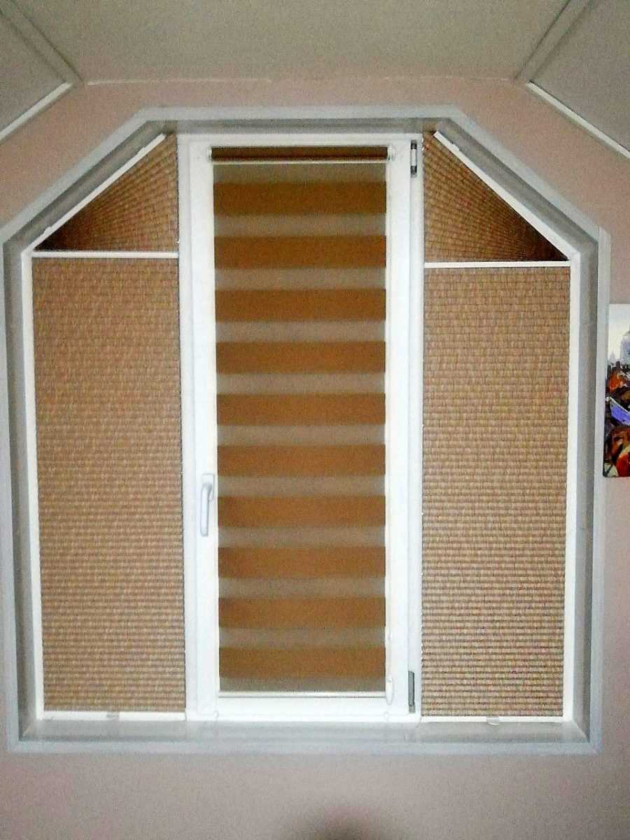 - Изделия «День-Ночь» (см. фото) оптимальны для нестандартных окон. Если их повесить на арочное окно, то они создадут «эффект веера».