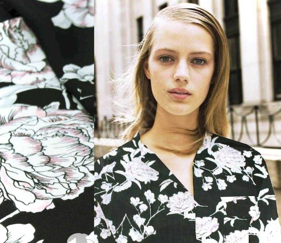 Материал имеет глянцевый блеск и используется для пошива платьем, блузок и мужских рубашек.