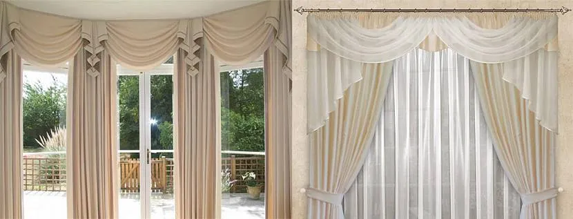 Мягкие ламбрекены различаются по способам сборки и расположения складок (формам драпировки):