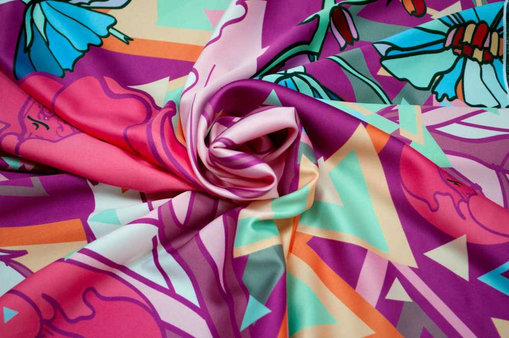 Атлас. Гладкая набивная ткань с глянцевым блеском. Ткут атласным переплетением нитей. Отличается высокой прочностью, имеет красивый внешний вид. На гладкое полотно можно нанести любой рисунок, включая 3D изображения. Выбирают для изготовления легкой одежды, домашнего текстиля: покрывала, декоративные наволочки, шторы, постельное белье.Трикотаж. Мягкое эластичное полотно преимущественно натурального состава (хлопок). Благодаря рыхлой структуре трикотаж хорошо окрашивается. Большой популярностью пользуется тонкий материал с яркими мультяшными принтами (кулирка), из него шьют детскую одежду.