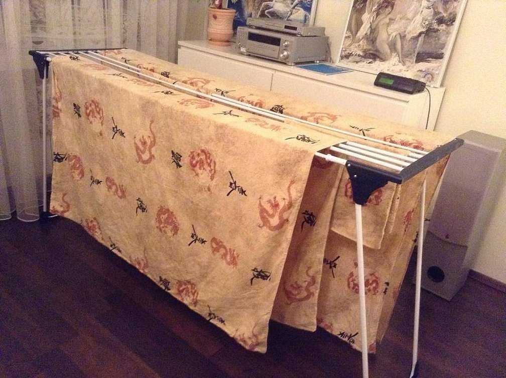- Если изделия правильно повесить сушиться, отпадет необходимость в глажке. Материал быстро восстанавливает свою форму.