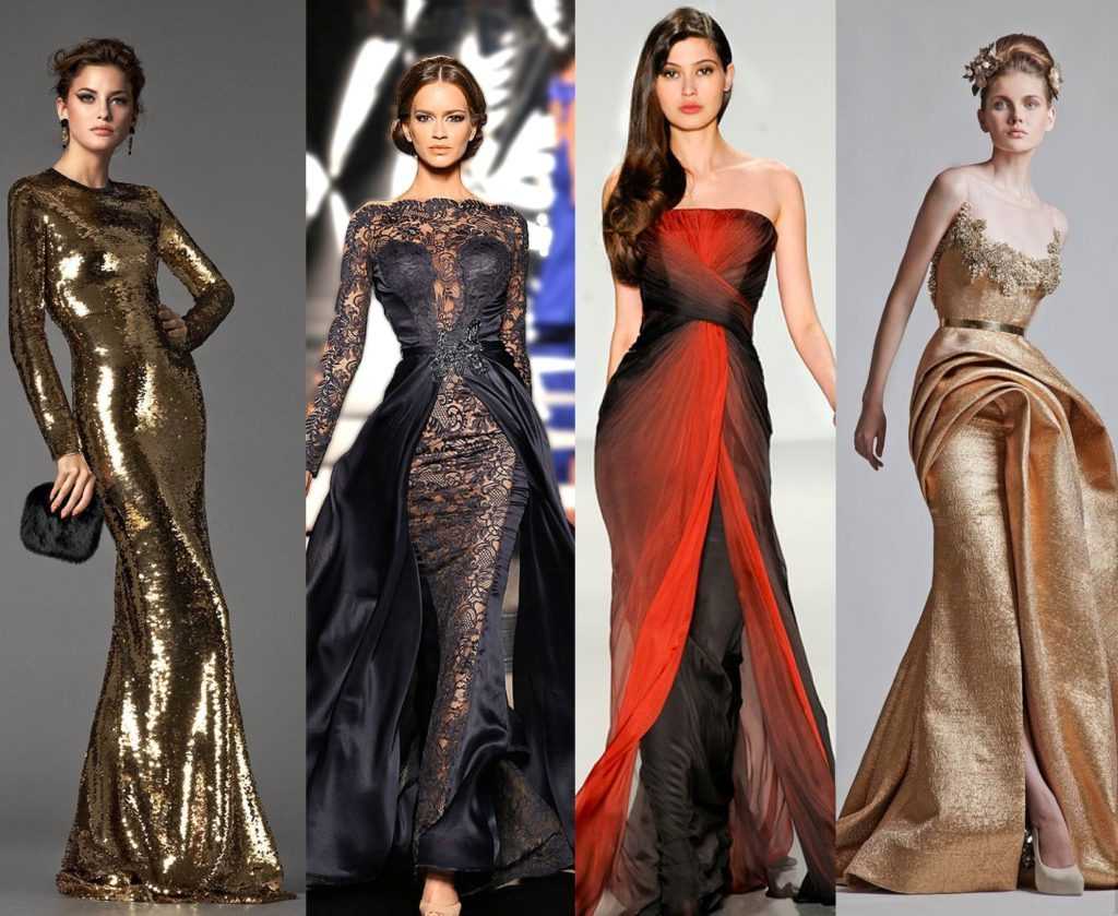 Вечерние и коктейльные платья шьют из различных цветовых решений, но при этом каждое платье изготовлено из одного материала желательно с блёстками.