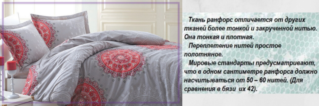 Разобравшись с материалом ранфорс и что это такое, следует разобраться и с тем, на что обращать внимание при выборе постельного белья из него. Вам это будет интересно Что такое дублерин: способ применения и приклеивания на ткань