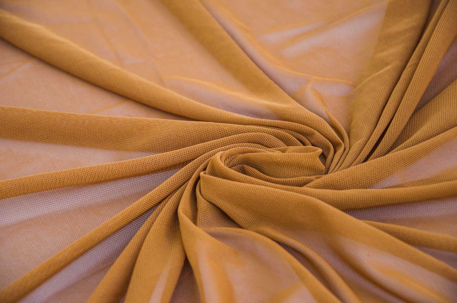 Стрейчевая синтетическая сетка телесного цвета применяется для пошива эффектных танцевальных костюмов — она очень лёгкая и эластичная, не сковывает движения, имитирует отсутствие ткани.