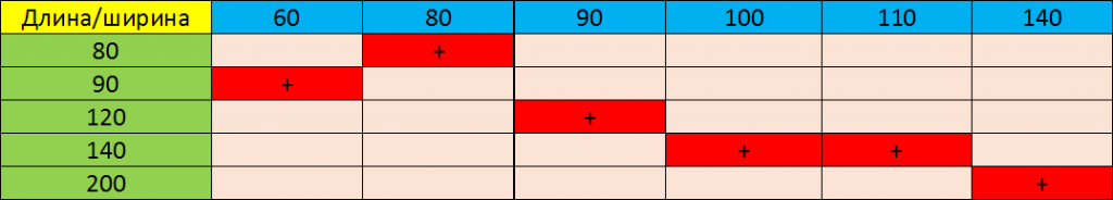 - для подростковых кроватей. Размер рассчитывается из размеров матраса или спального места, длина простыни будет варьироваться от 140 до 220 см.