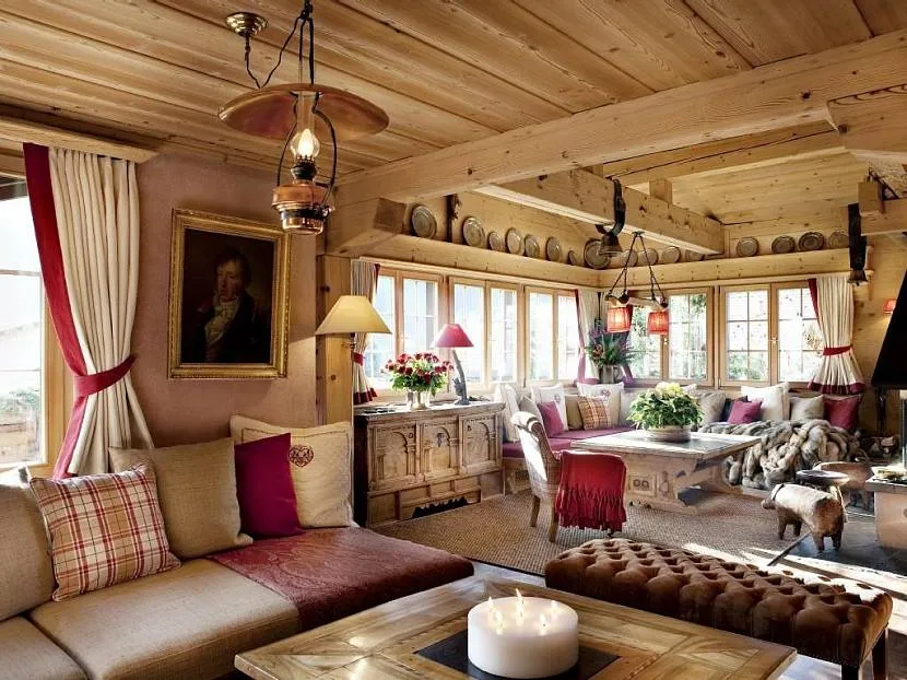Багетные, струнные или трубчатые карнизы — это идеальный вариант для навешивания штор любой тяжести в загородном доме. Что касается способа установки, то доступен потолочный и настенный вариант. Сами же шторы имеют разные удерживающие приспособления: