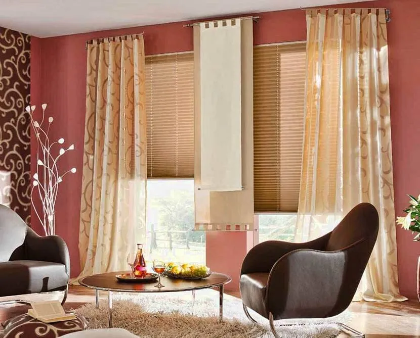 Если есть необходимость в сочетании этих штор с другими занавесками, тогда рекомендуется выбирать изделия, элементы крепления в которых малозаметны или скрыты. Лучше всего в этом случае использовать рулонные, римские шторы или шторы плиссе.