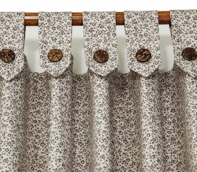 На пуговицах. Красивый и практичный вариант; удобен там, где требуются частые стирки, например, на окне кухни или детской. Пуговицы могут играть и отдельную декоративную роль.