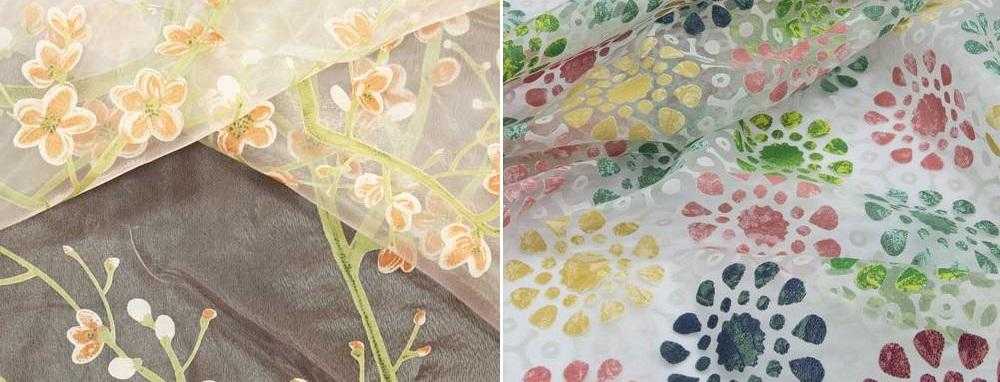 Как уже говорилось выше, наиболее распространена органза деворе, которая используется для пошива оригинальных штор и отделки дизайнерских нарядов. В изготовлении интерьерного текстиля часто встречаются такие модели ткани, как тюль винтаж или тюль варна в технике деворе. Выглядят изысканно, нежно, создают определенный стиль в помещении.