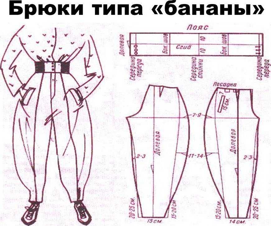 Мерки и сшивание происходят аналогично по схеме штанов бананов.