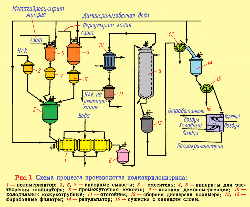 Газ (по сути, воздух) преобразуют в синильную кислоту и ацетилен, затем – в поликристаллическую полимерную смолу с линейной формулой C3H3N. В результате получается универсальный полимер, востребованный производстве широкого спектра продуктов (не только текстиля).