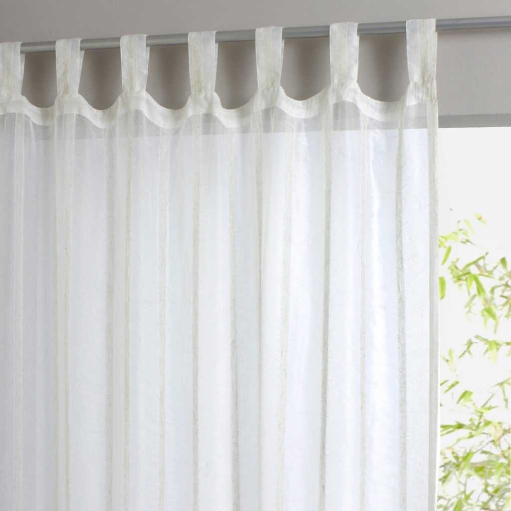 Современный дизайн штор, которые подвешиваются на штангу карниза посредством полосок ткани делает интерьер комнаты необычным и актуальным.