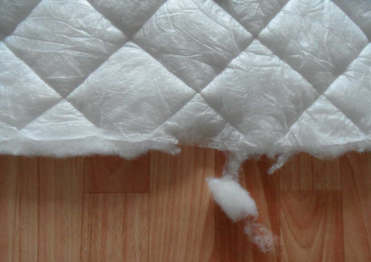 Крупные вещи обычно простегивают, чтобы наполнитель не съезжал. Иглопробивная стежка фиксирует срединный материал с верхним чехлом. Такой метод надежен, а само изделие относительно недорогое. Есть и другие способы фиксации наполнителя: