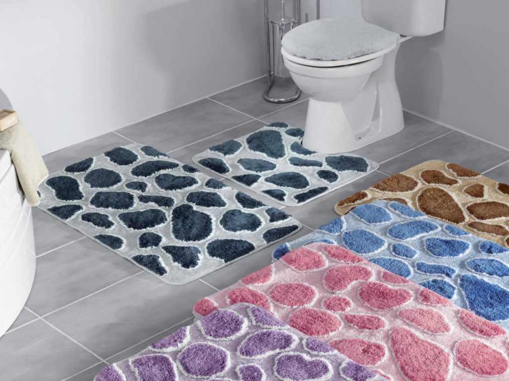 Существуетогромный ассортимент ковриков для ванных комнат различных форм и размеров. Однако неизменными фаворитами все же остаются комплекты небольших размеров, которые предназначены для размещения возле ванны, туалета и раковины. Их проще мыть, стирать, перемещать, сушить, из-за чего они пользуются популярностью.