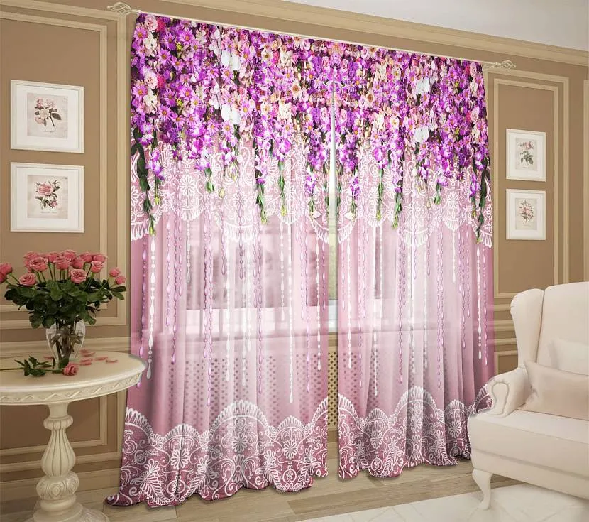 Фотошторы. Этот вариант занавесок подходит для тех помещений, где отсутствует композиционный центр. На них может быть изображено абсолютно все: от природы до производственной или строительной техники.