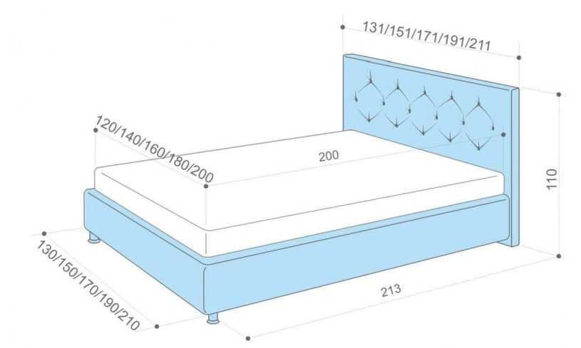 Двухспальные– для совместного сна двоих человек; Ширина такой кровати варьируется от 140 см до 220 см, длина от 190 до 220 см.
