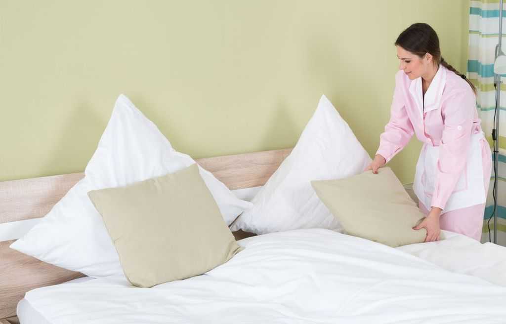 - Все постельные принадлежности приводятся в надлежащий вид: простыня разглаживается, подушки взбиваются, уголки одеяла аккуратно возвращаются в пододеяльник.