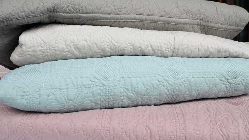 - Для создания законченной композиции, к некоторым покрывалам дополняются декоративные подушки. Изготавливаются они из одной материи;