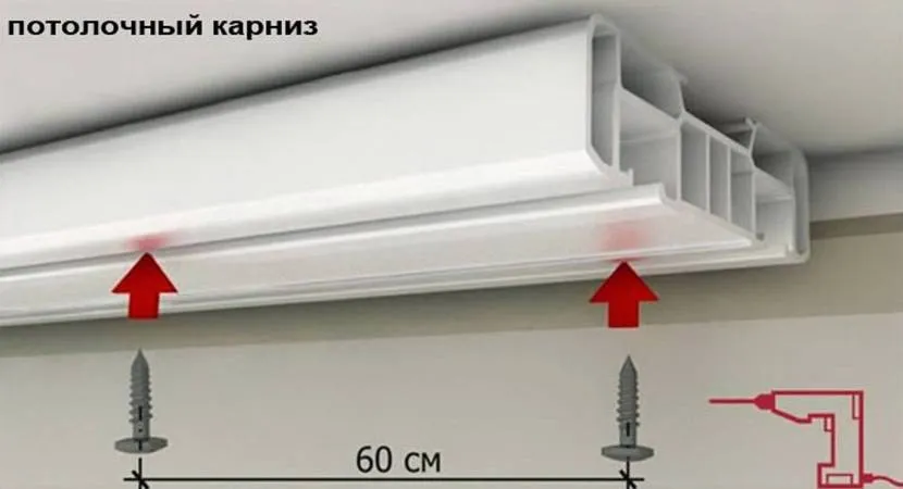 Для монтажа вам понадобится инструкция, приложенная к вашей модели карниза, карандаш и строительный уровень. Порядок установочных работ: