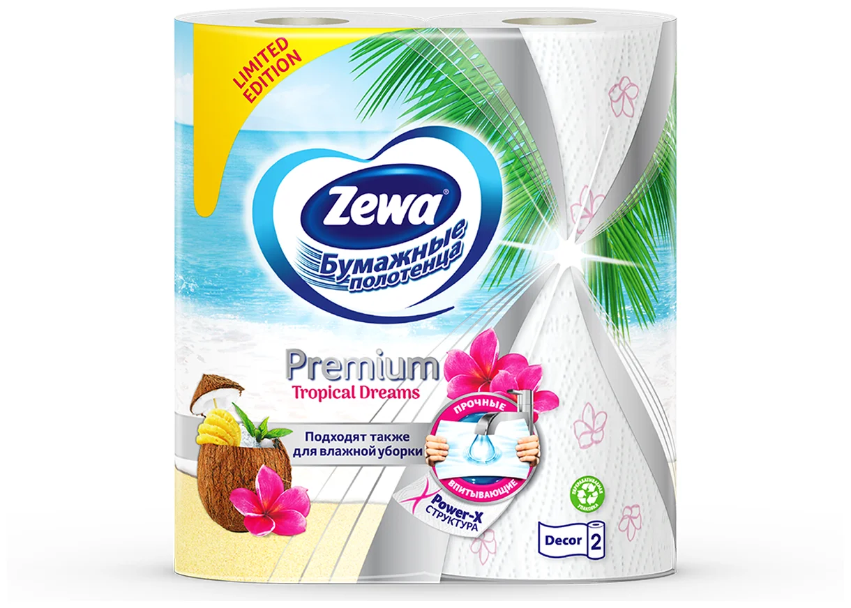 - Zewa. Производитель использует прочную бумагу с тиснением и качественной перфорацией, которая позволяет контролировать расход рулона. Бумажные изделия этого бренда хорошо впитывают влагу и не рвутся при намокании.
