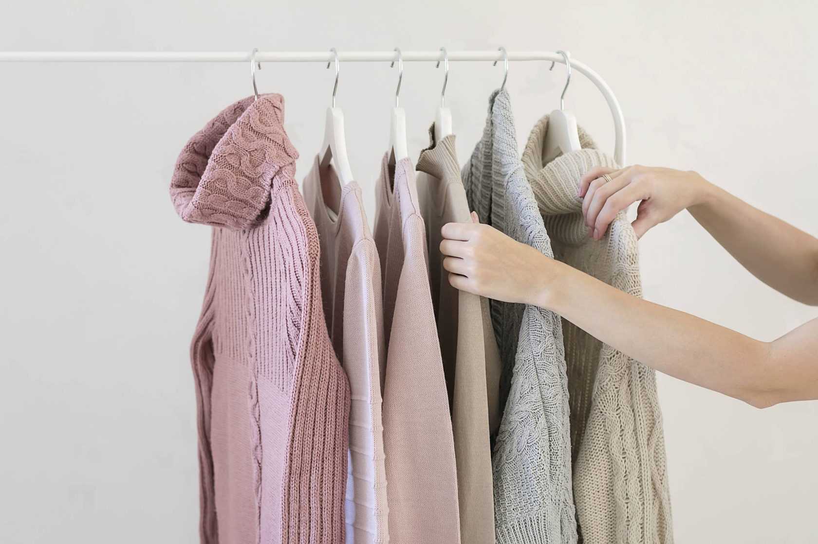 Трикотажные вещи не стоит вешать на плечики, чтобы они не потеряли форму. Лучше всего сложить свитера и толстовки прямоугольниками и расположить на полке друг на друга. Также можно скатать одежду валиками, это не только поможет сэкономить гардеробное пространство, но и даст возможность легко и быстро отыскать нужную вещь среди прочих.