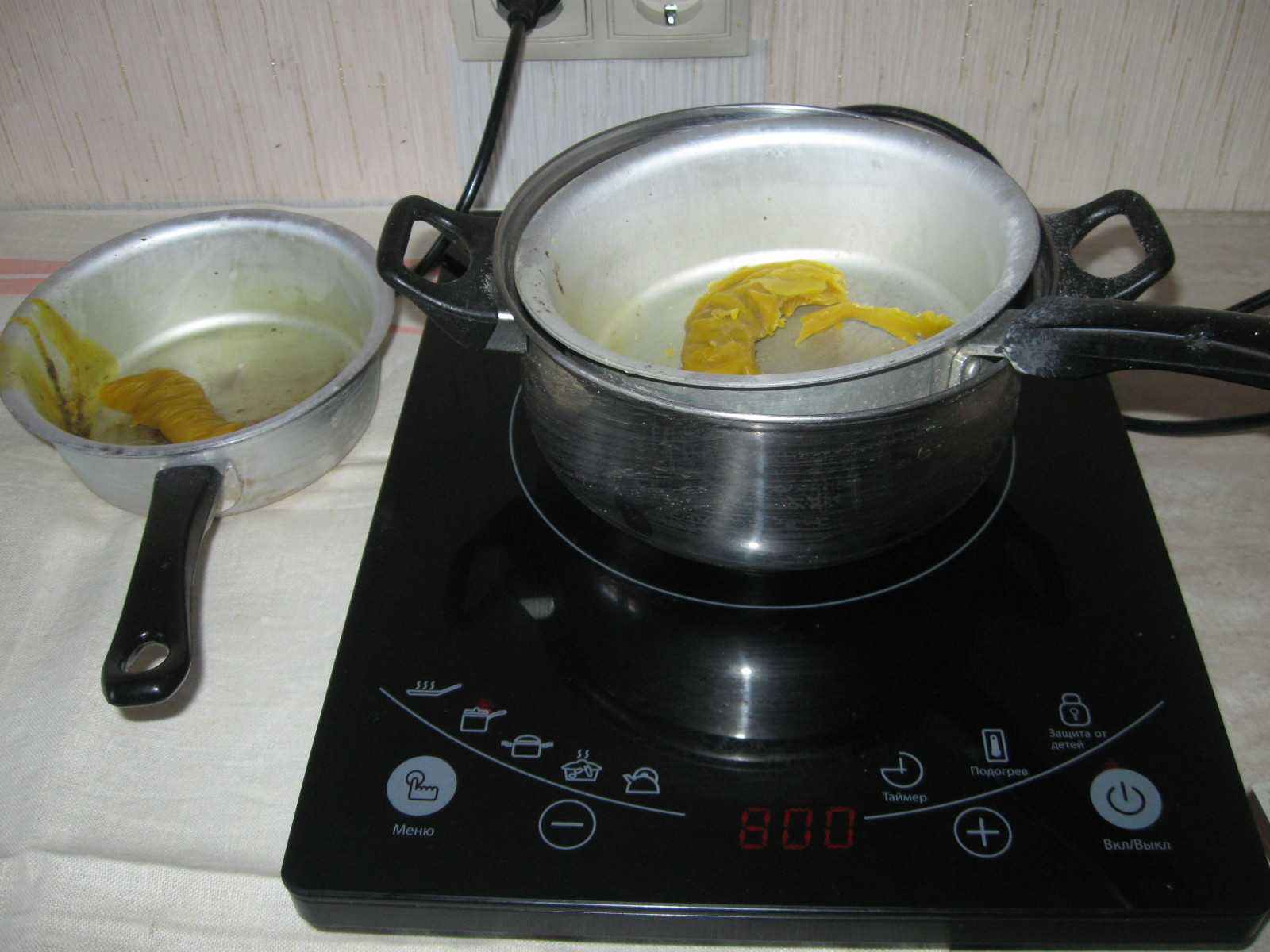 Важно, что как только весь воск вытечет на противень, необходимо выключить духовку и достать его, чтобы воск не успел воспламениться.