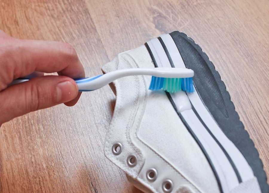 Используйте белую зубную пасту без геля. Цветная паста может окрашивать обувь.