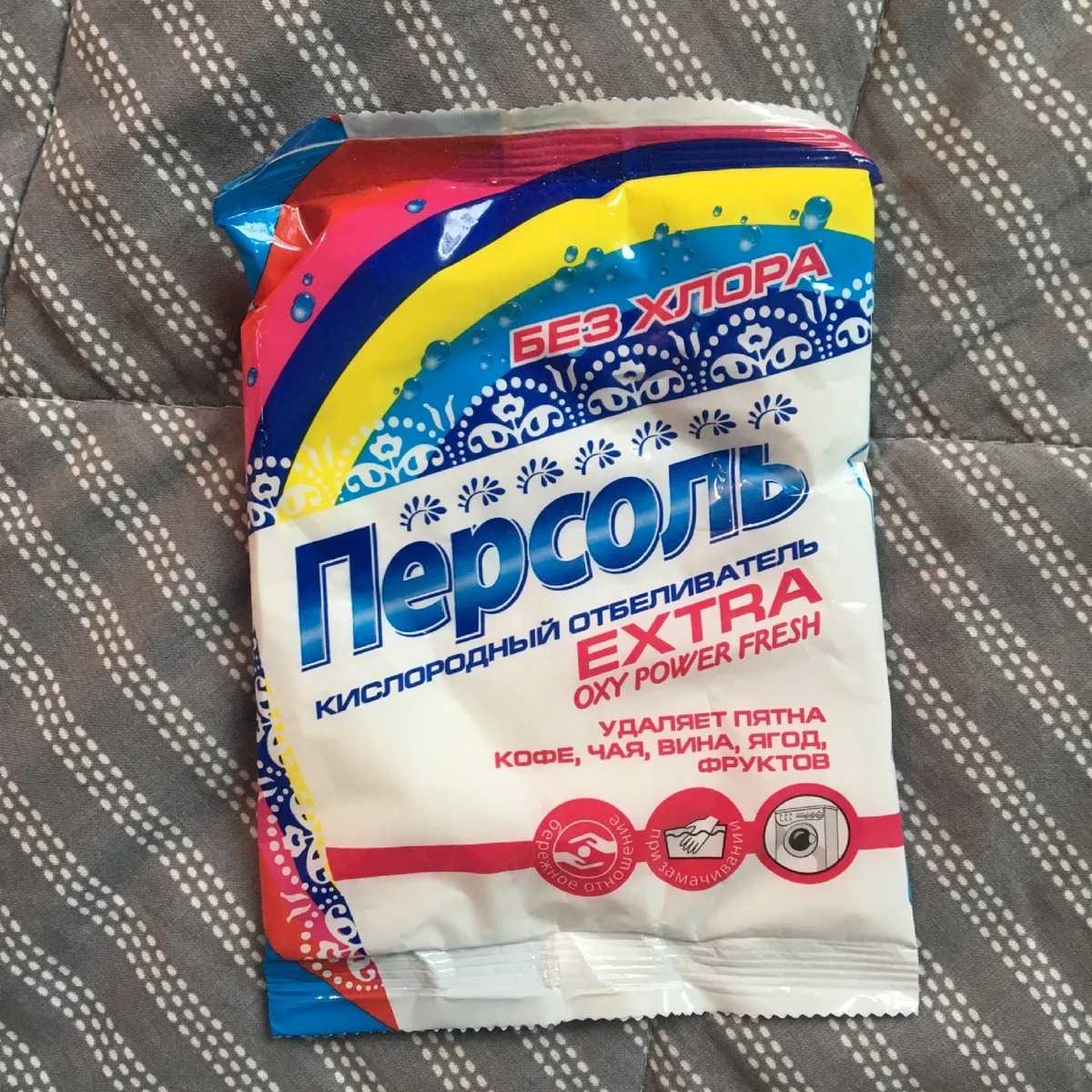 Это порошок, содержащий хлор. Дополнительные компоненты бережно относятся к структуре ткани, действуют не так агрессивно, как «Белизна». Порошок разбавляют до однородного состояния, наносят на пятна, выжидают 5 ч., затем стирают.