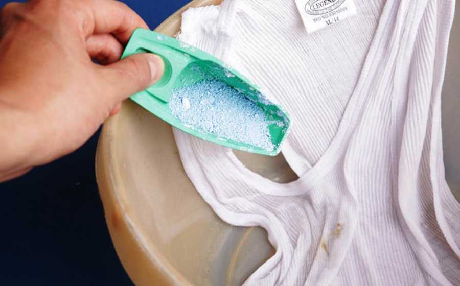 - содово-соляной раствор — в него погружают нижнее белье на 12-20 минут. После остатки загрязнений застирывают хозяйственным мылом и отправляют в машину;