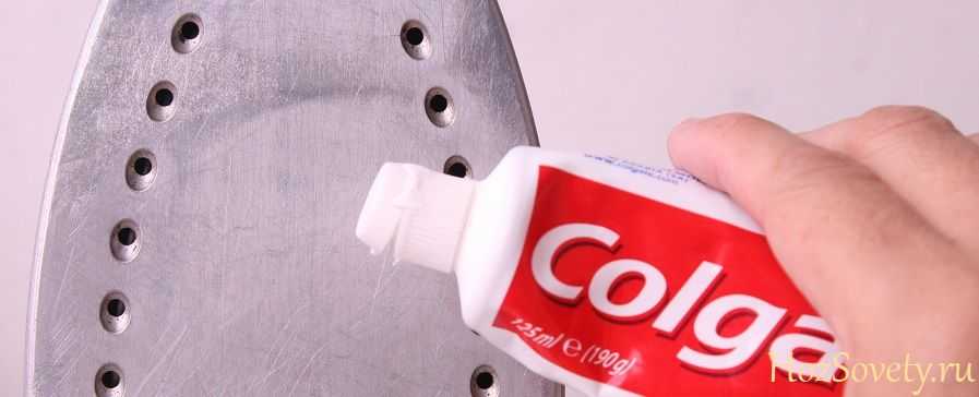 С помощью зубной пасты можно легко и быстро почистить подошву утюга. Для этого нужно разогреть прибор, отключить. Взять губку или старую зубную щетку и нанести ровный тонкий слой пасты на обрабатываемую поверхность. Дождаться высыхания вещества, после чего удалить остатки пасты мягкой сухой тряпкой.