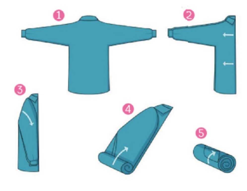 Самым простым способом упаковки вещей с экономией места является формирование рулона.