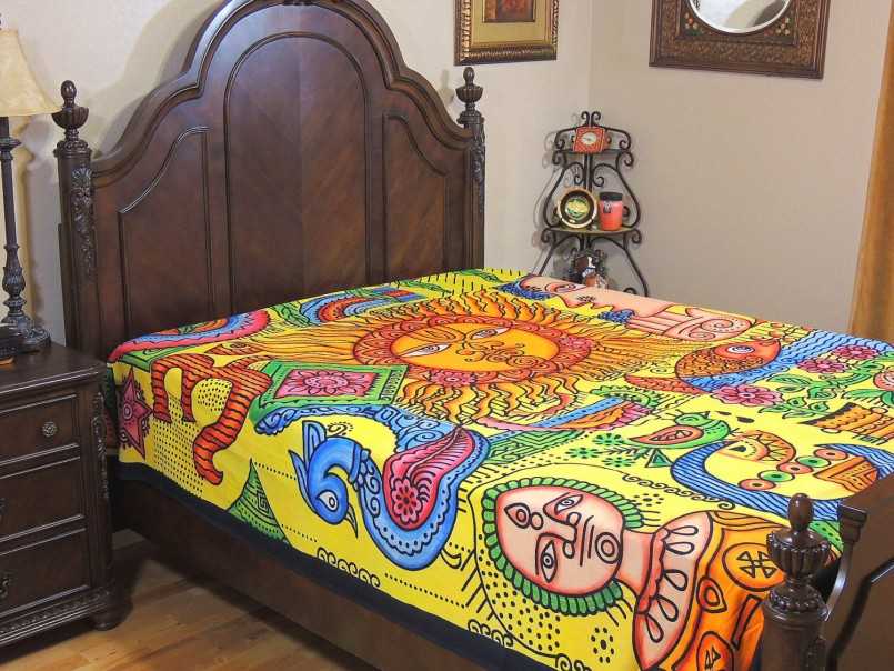 Обратите внимание! Покрывало должно сочетаться с другими предметами в интерьере, иначе это будет выглядеть нелепо, и гобелен будет явно лишний. Уж лучше придираться к каждой мелочи и получить идеальный вариант, чем остановиться на первом попавшемся и испортить все впечатление от такого красивого аксессуара