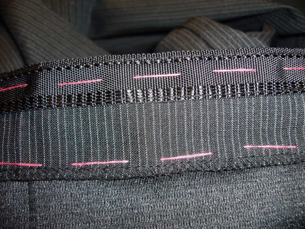 - распарываем пояс, по десять сантиметров в правую и левую сторону от среднего шва брюк;