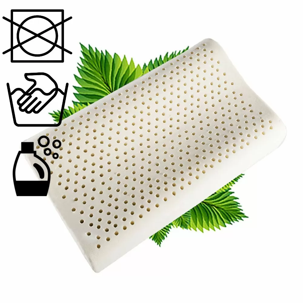 Натуральный латекс – это дорогостоящий природный наполнитель, не имеющий аналогов. Латекс сочетает в себе мягкость и упругость, идеально повторяет изгибы человеческого тела и обеспечивает правильную поддержку головы и шеи во время сна. Несмотря на то, что латекс почти не впитывает влагу, стирать такие подушки не рекомендуется. Небольшие загрязнения можно удалить с помощью губки или специальной салфетки. Если загрязнения обширные, допускается ручная стирка в теплой воде.