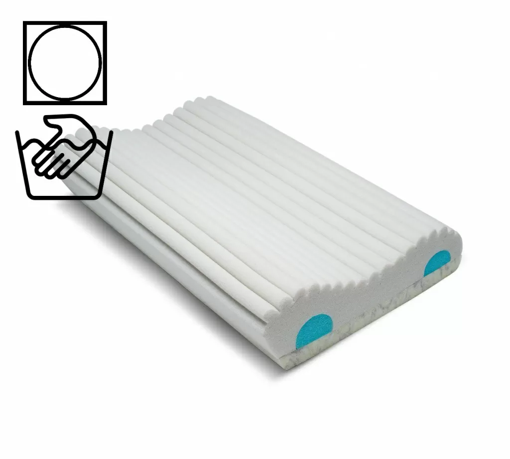 Ортопедические подушки из пенополиуретана, полиэстера или поролона допускается стирать в машинке-автомат или вручную. Если Вы выбираете машинную стирку, режим должен быть максимально щадящим и коротким. Перед стиркой обязательно ознакомьтесь с информацией от производителя на ярлыке изделия. Именно на нем будет указана возможная температура для стирки и прочие параметры. Если этикетка не сохранилась, выбирайте режим ручной стирки в прохладной воде без отжима.