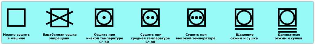 Обозначения значков сушки.