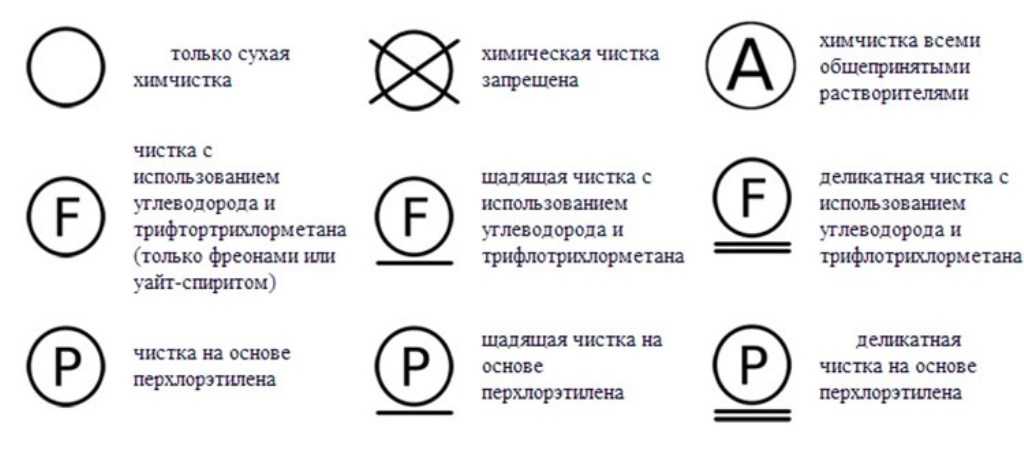 Обозначения значков химчистки.