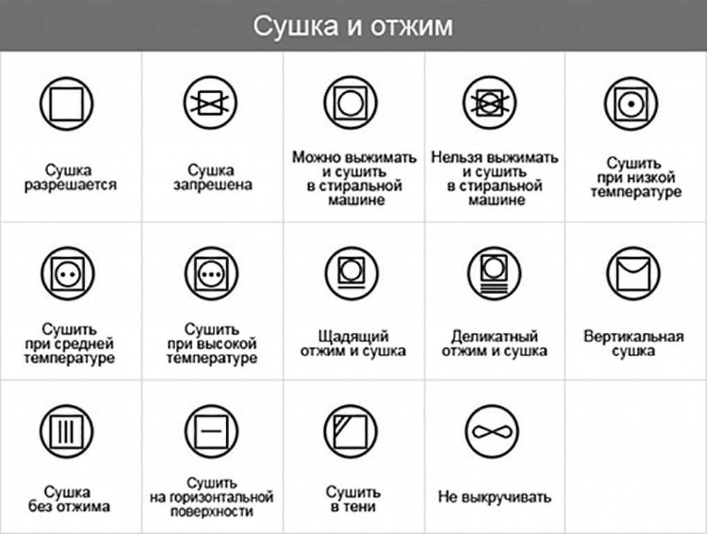 Обозначения значков сушки и отжима.